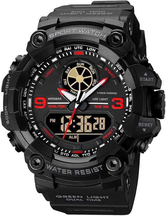 Mens Military Watches for Men, Men’s Wrist Watches, Analog Digital Watch Stop Watches for Sports, Large Dual Time 12/24H Gifts for Him